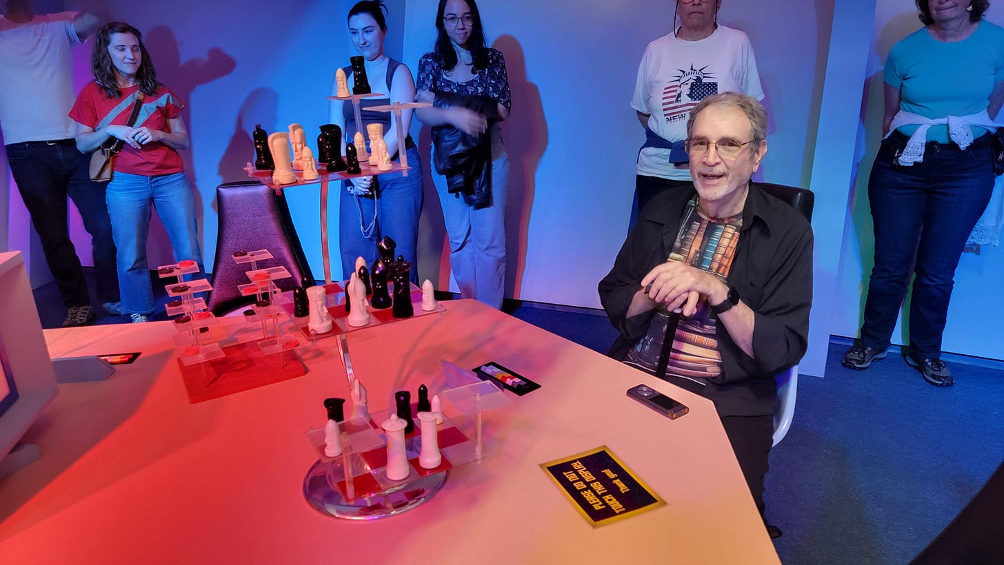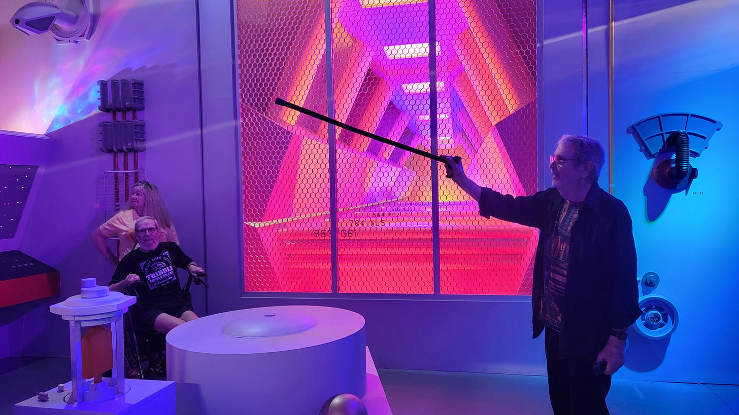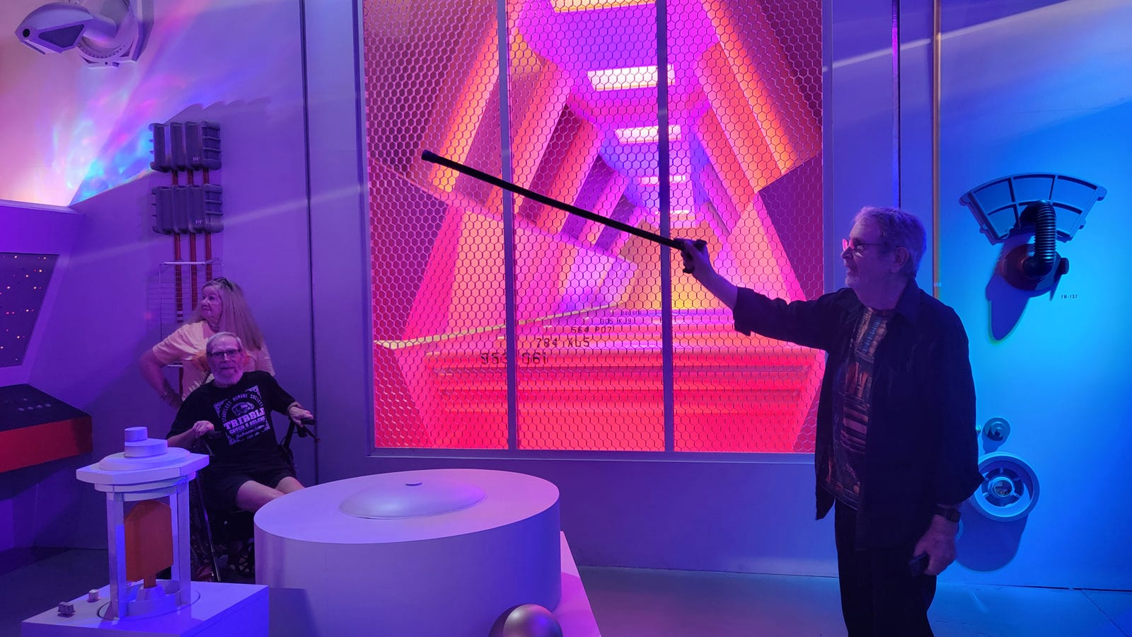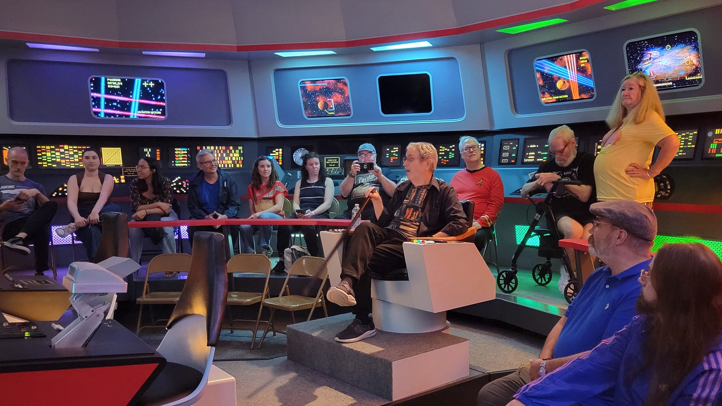 David now lives across the state border in Vermont, not far from Ticonderoga. He appears about once a month to lead tours of the replica sets. The afternoon tour concludes with his Original Series episode “The Trouble with Tribbles” aired on the bridge viewscreen (which is a modern high-definition flatscreen TV). David provides live commentary.
