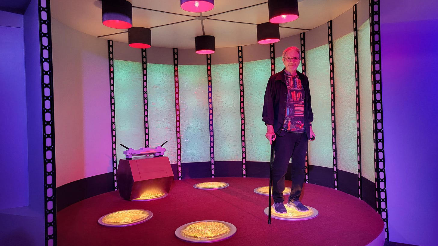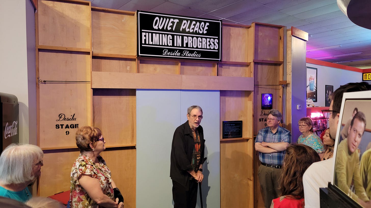 David Gerrold greets guests outside the entrance to the replicas of the sets once found on Stage 9 of Desilu Studios.